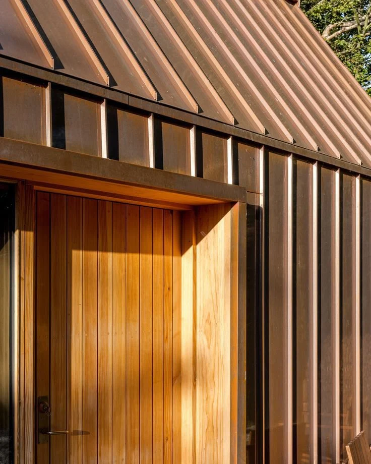 - Фасады: используется для облицовки зданий, обеспечивая защиту и современный внешний вид.