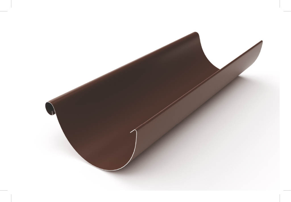 Желоб полукруглый металл OSNO (RAL 8017 шоколад) L=3000мм 125*90мм (220шт/поддон) - элемент водосточной системы, который применяется для сбора осадков с кровли и отвода в водосточную трубу. Преимущества: двустороннее полимерное покрытие, оптимальная глубина.