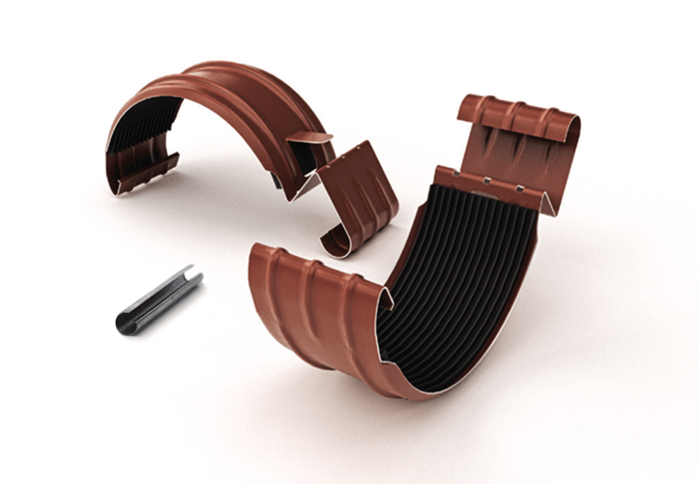 Соединитель желоба (+ втулка) металл OSNO (RAL 8017 шоколад) 125*90мм (56шт/кор) - элемент водосточной системы, который обеспечивает герметичное соединение желобов или желоба с углами. Преимущества: резиновый уплотнитель обеспечивает герметичность соединения, ребра жесткости обеспечивают дополнительную надежность конструкции. Втулка усиливает место соединения желобов.